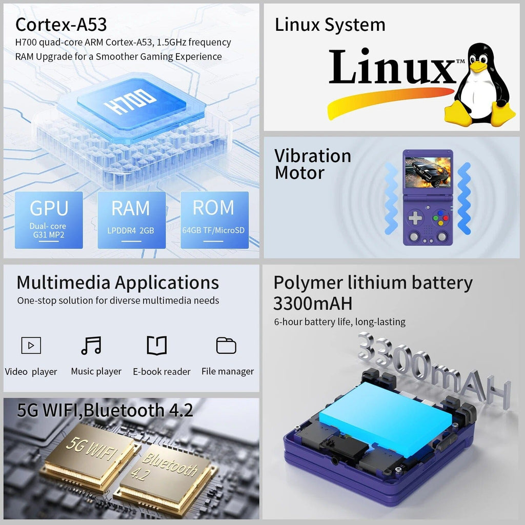 The ANBERNIC RG34XXSP is a powerhouse handheld gaming device that brings thousands of classic games to your fingertips. With 10,000 pre-loaded games spanning multiple generations—from retro arcade classics to beloved console titles—you'll have endless entertainment wherever you go. Featuring a vibrant display, responsive controls, and impressive battery life, this portable system delivers authentic gaming nostalgia with modern convenience. Perfect for collectors and casual gamers alike, experience the golden age of gaming in your pocket.