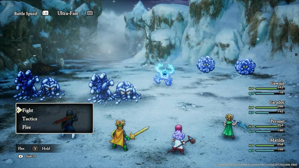 Traditional DRAGON QUEST style battles: A refined take on the classic turn-based battle system, featuring new animations, additional improvements such as an adjustable battle speed, an auto-battle setting, and more.